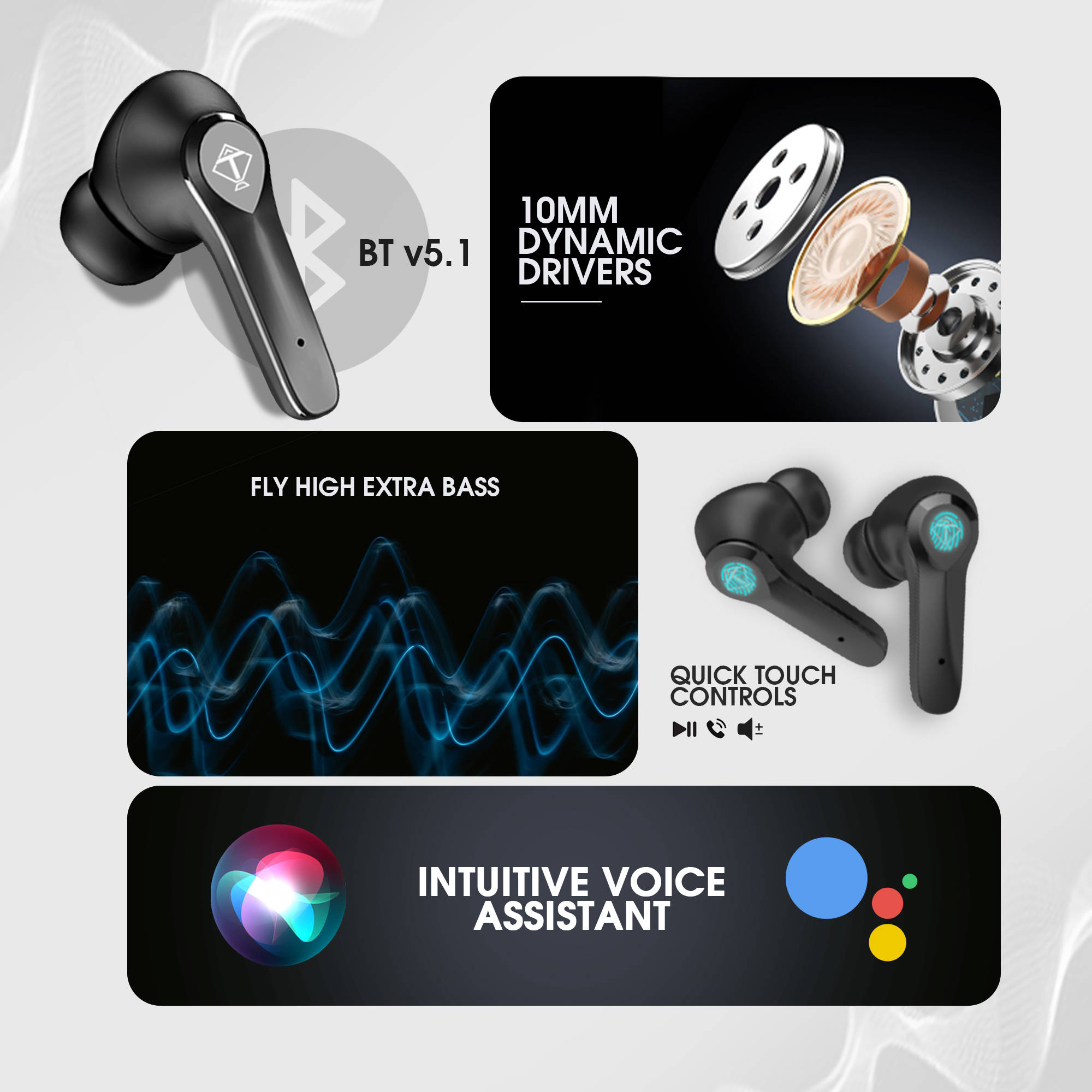 Newly Launched Kite Alive True Wireless Earbuds (TWS) with Active Noise Cancellation (ANC), IPX6 Adventure Ready, Quad-Mic, Wink Charge, Full Touch Controls, Fly High Extra Bass, Voice Assistant & 24 Hours Playtime