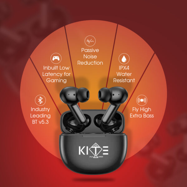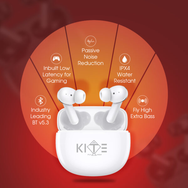 Newly Launched Kite Zeal True Wireless Earbuds (TWS) with latest BT v5.3, Passive ENC, Wink Charge, Low Latency, Fly High Extra Bass, IPX4, Full Touch Controls, Feather-light design, Voice Assistant & 20H Playtime